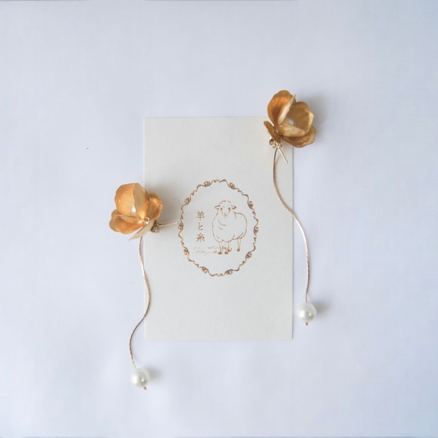 真鍮の花びらとドロップパール イヤリング/ピアス