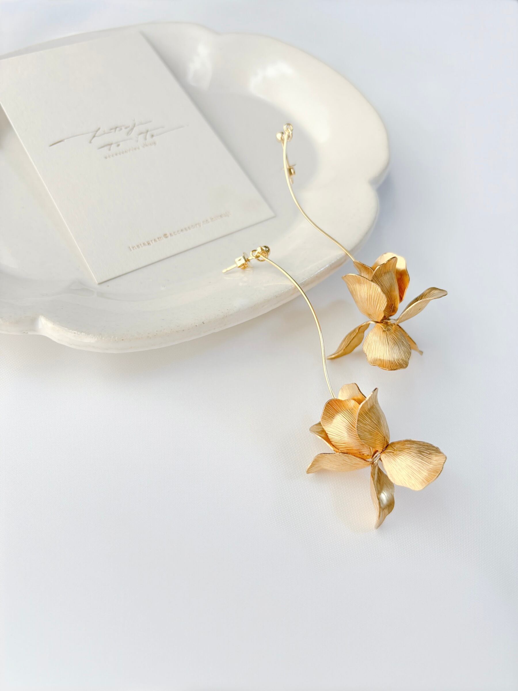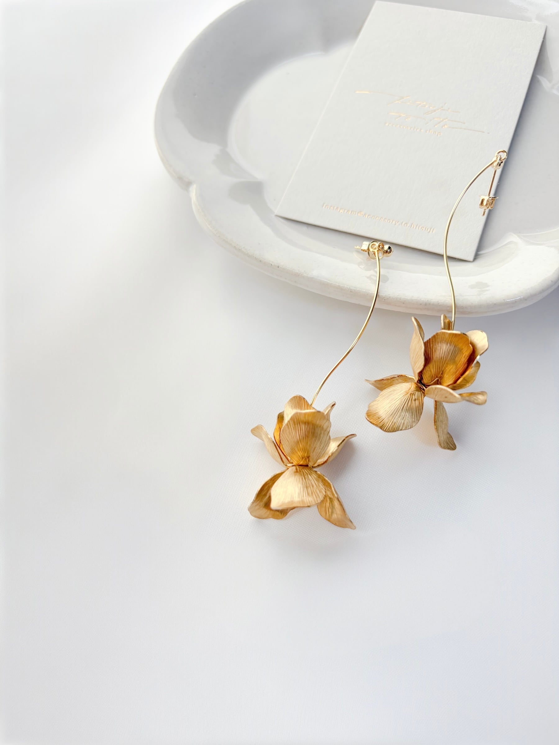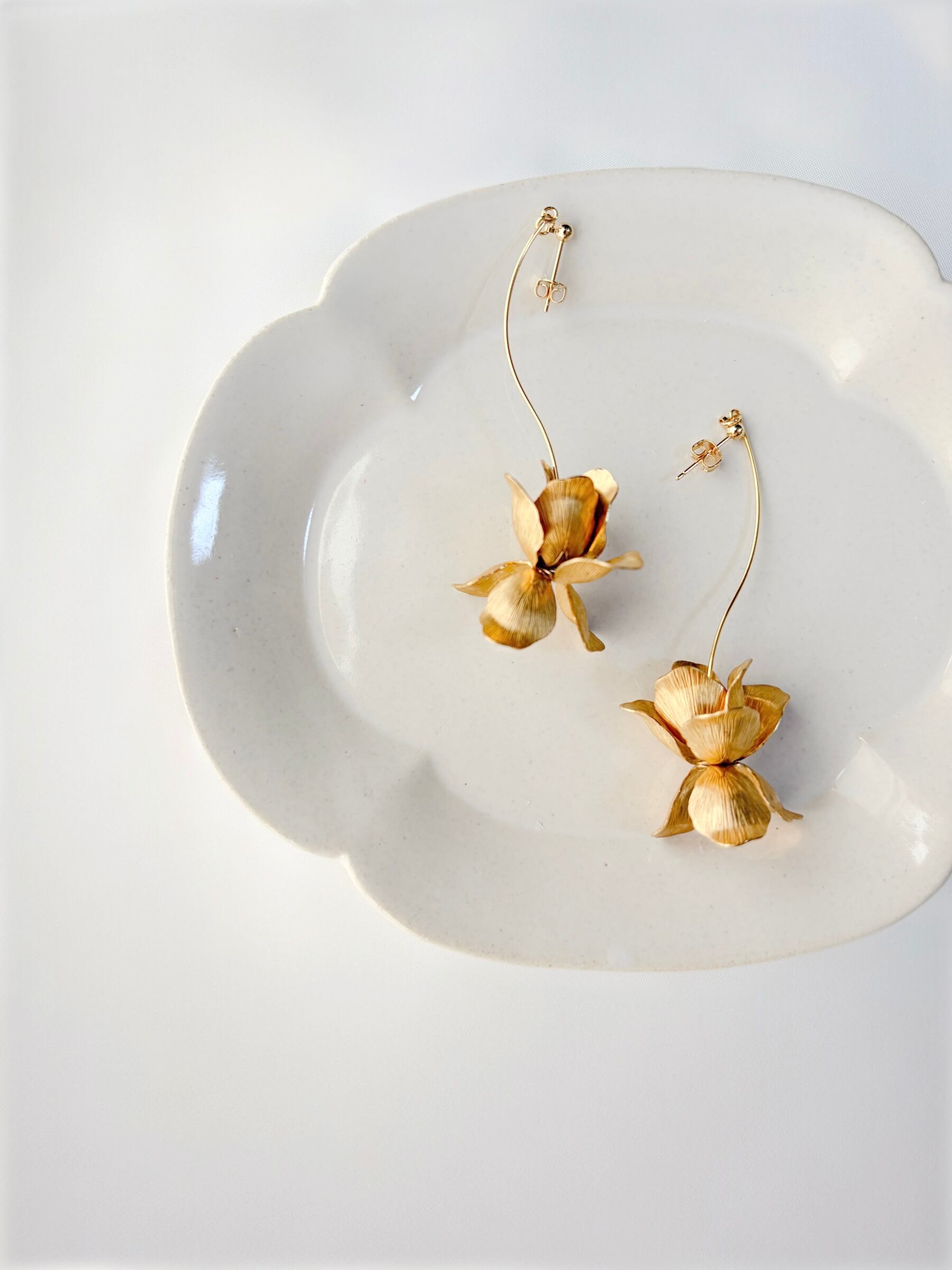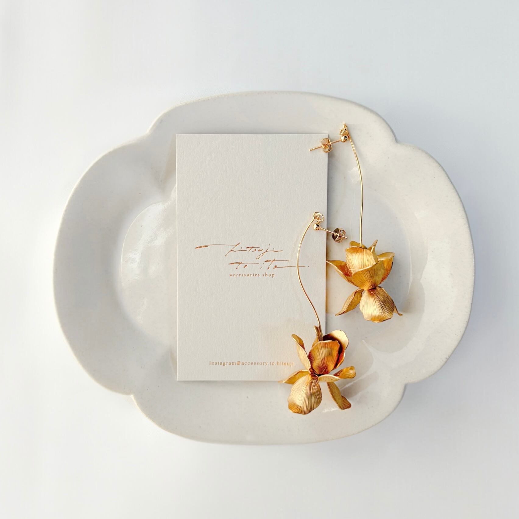 品ある輝きを持つ真鍮フラワーがゆらゆらと揺れて可愛い「のばら」。