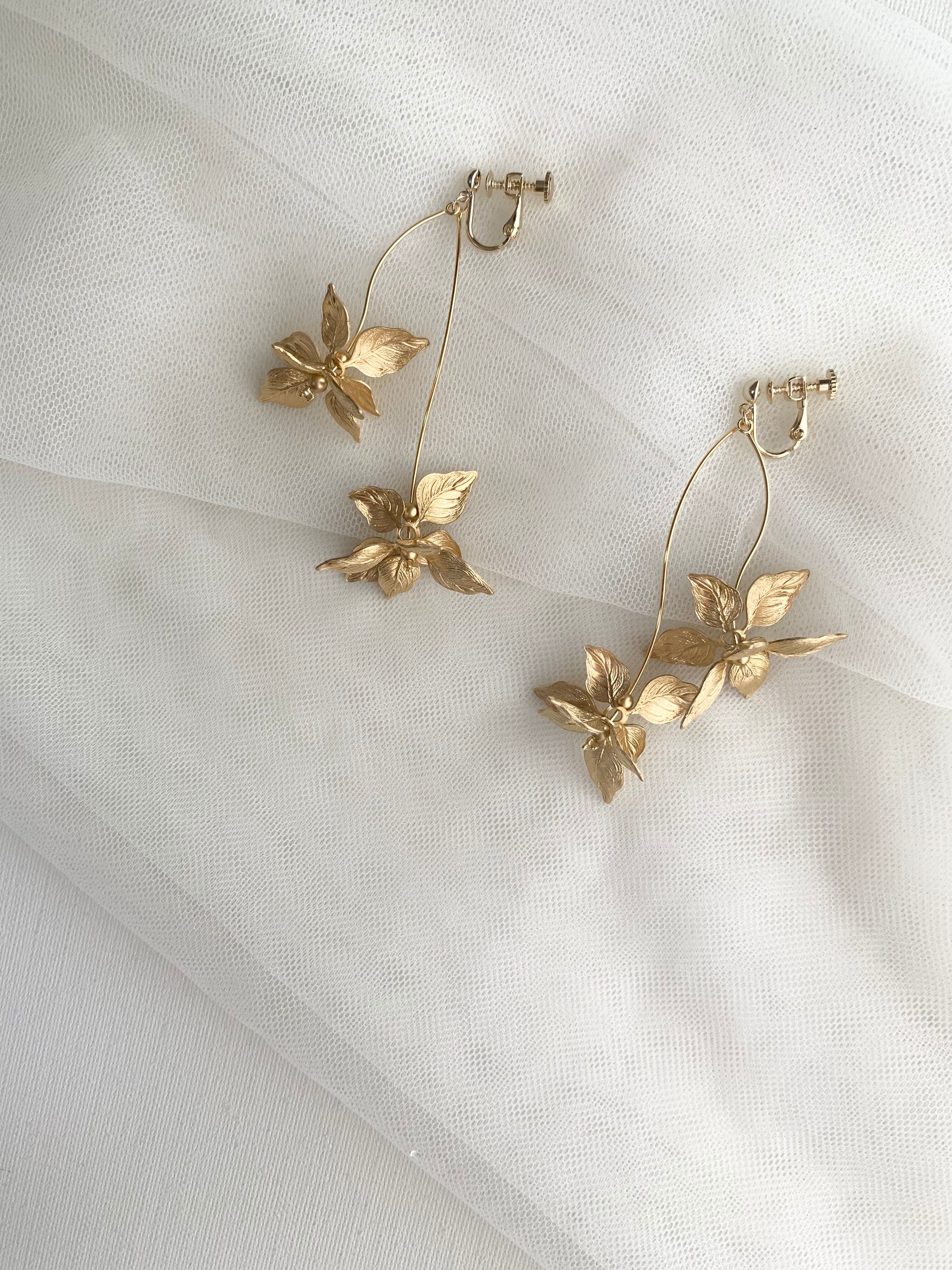 ゆらゆら揺れる真鍮フラワーを連ねた可憐な一点✳︎