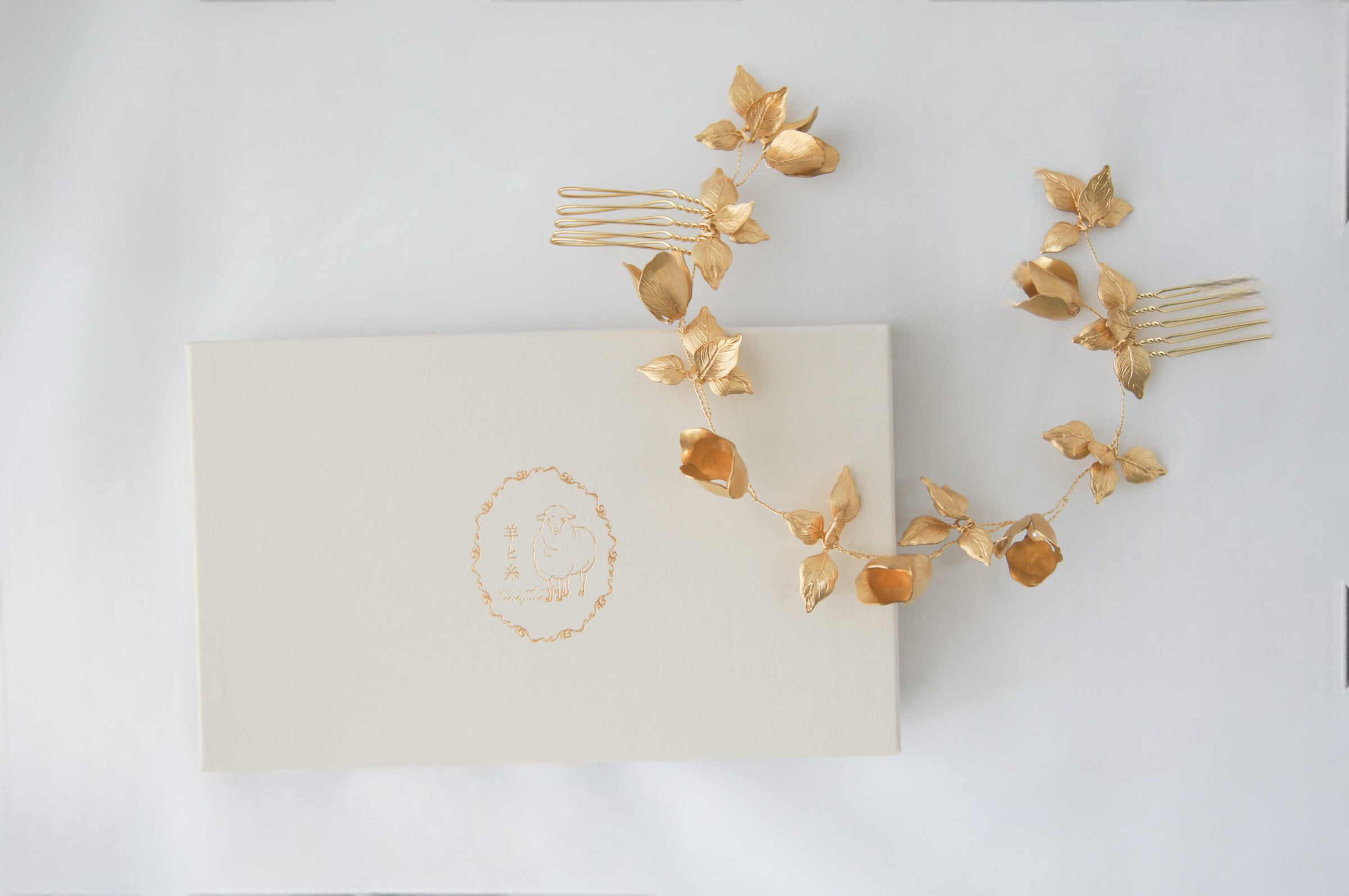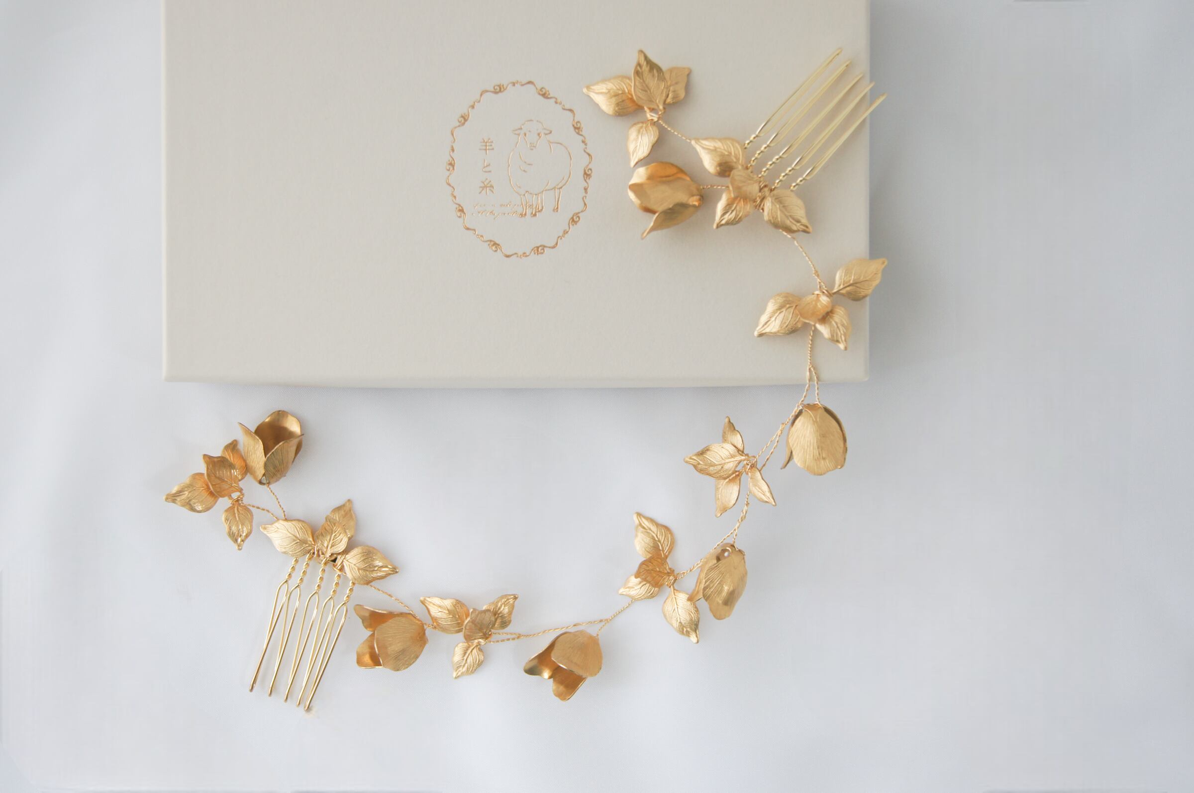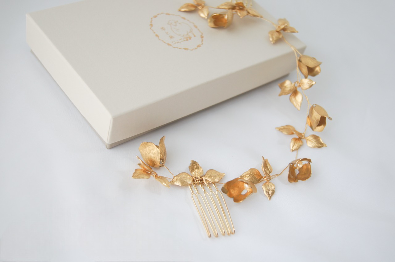蕾(つぼみ)と葉が凛として可愛いヘッドドレス。