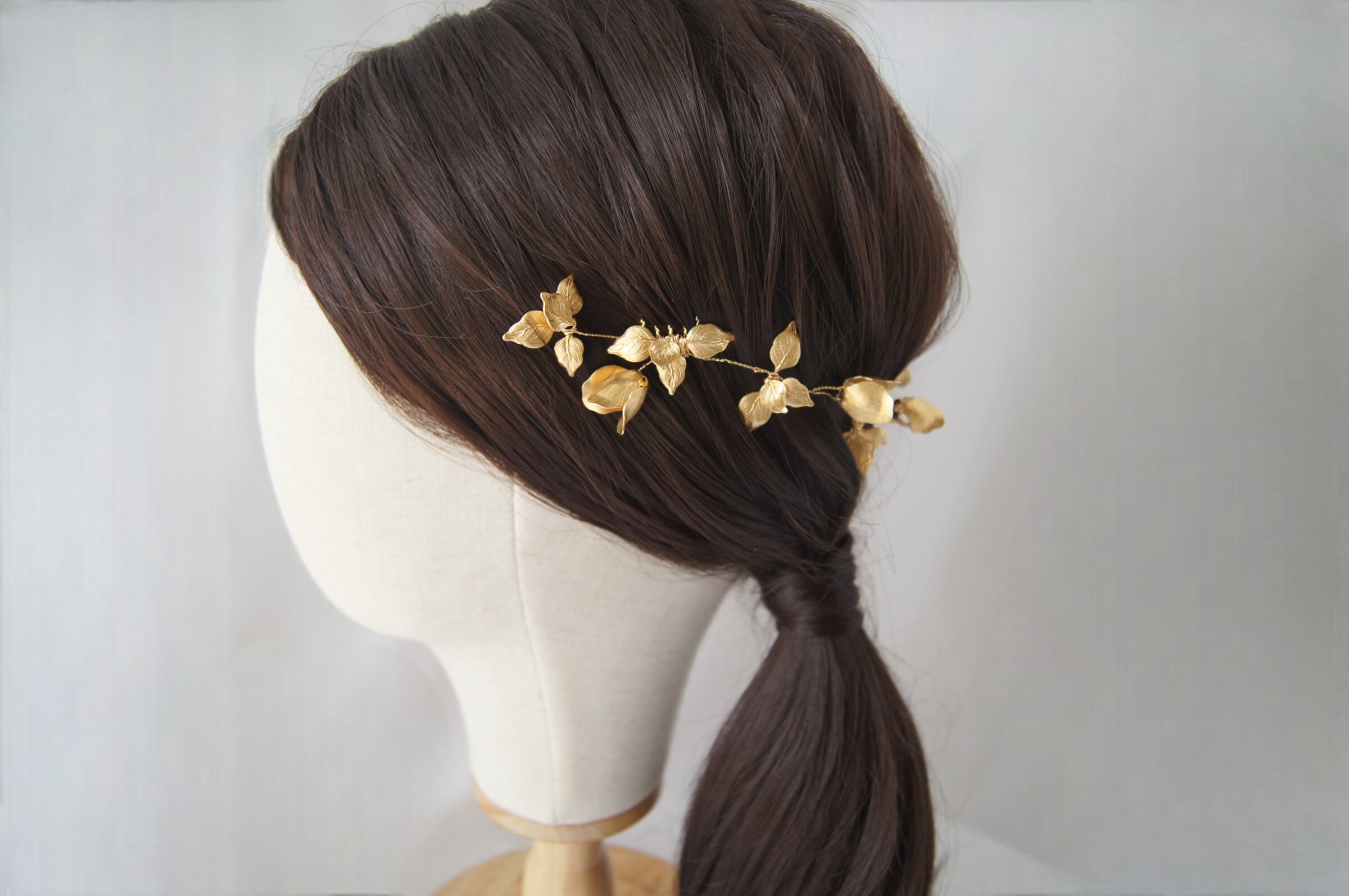 編み込みヘア、ハーフアップ、ポニーテール、おろし髪etc...両端のコームをヘアピンで止めて頂けますので様々な髪型にご利用頂けます。