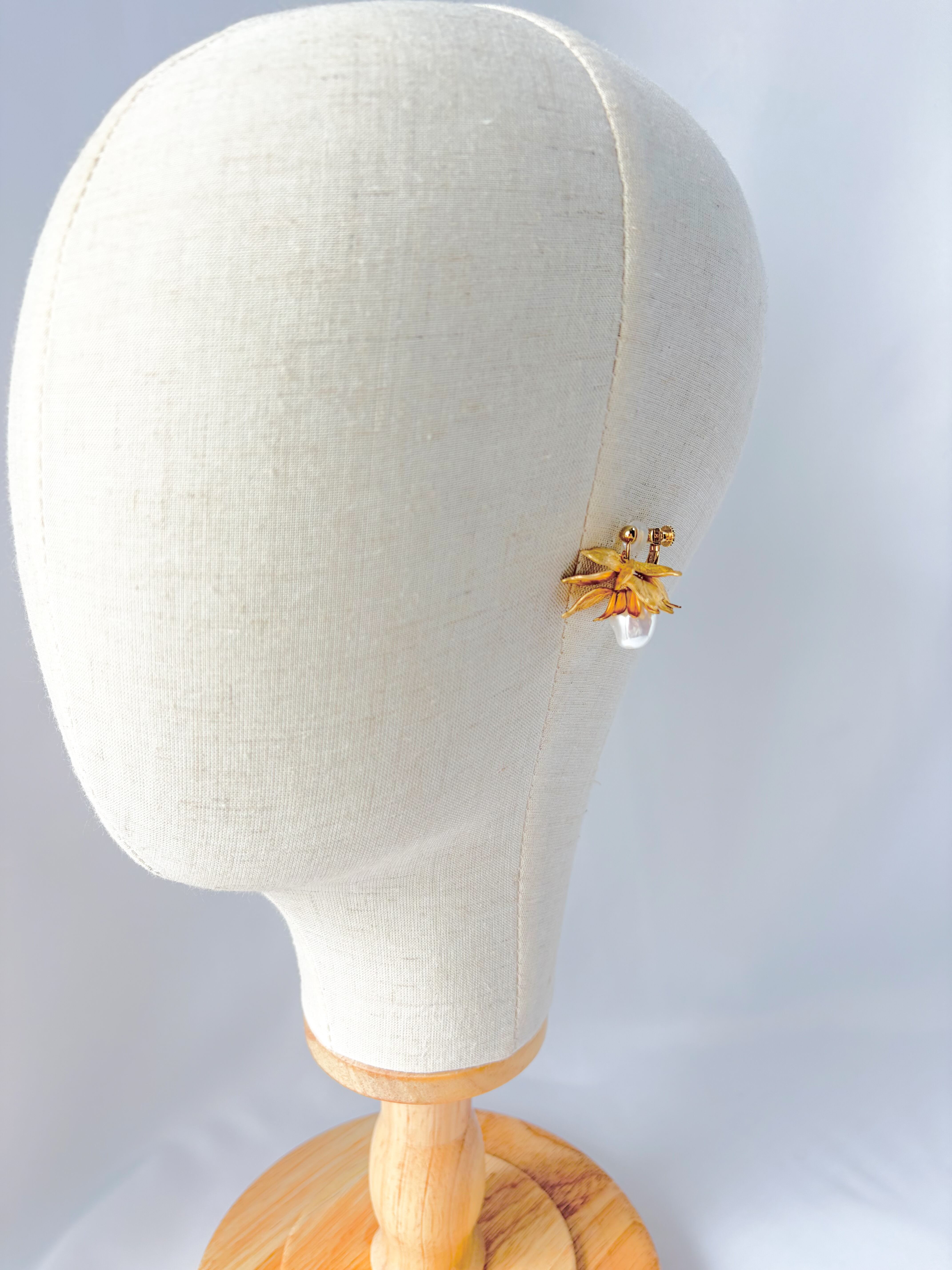 一粒バロックパールのイヤリング 真鍮フラワー ゴールド